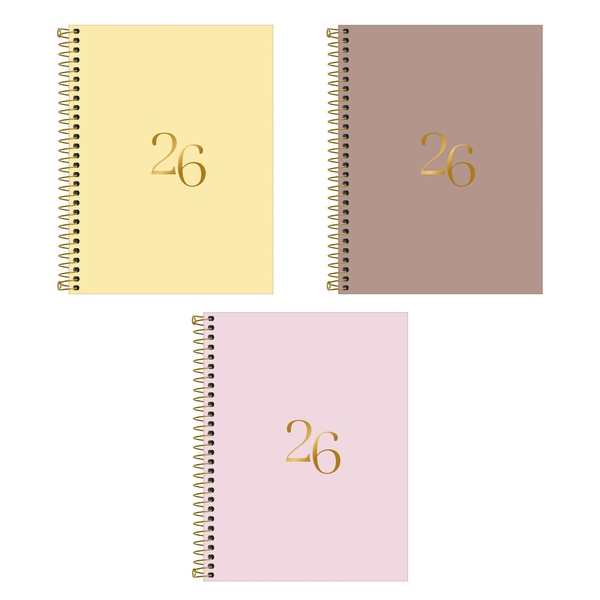A Agenda Anual Espiral Vanilla 2026 da Tilibra é perfeita para quem busca sofisticação e organização prática. Com formato de 17,7 x 24 cm, apresenta capa dura revestida com material especial e detalhe metalizado, além de bolsa plástica para guardar documentos ou anotações. Suas 176 folhas oferecem visão diária (exceto aos sábados e domingos), pautas com horários das 7h às 22h e planejamento anual e mensal. Também inclui conteúdos para controle financeiro, listas, metas e objetivos, ajudando a manter a rotina sempre em ordem. Produto certificado pelo FSC. Caso deseje escolher uma estampa/cor específica, entre em contato com nosso atendimento para verificar a disponibilidade! ITEM SORTIDO: NÃO GARANTIMOS A ENTREGA DE TODAS AS ESTAMPAS/CORES.