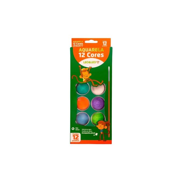 - 1X AQUARELA ESCOLAR ESTOJO C/12 COR LEONOR