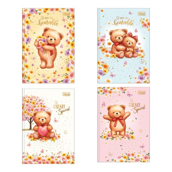 - 1x CADERNO BROCHURA 1/4 CAPA DURA 80 FOLHAS LOVE BEARS