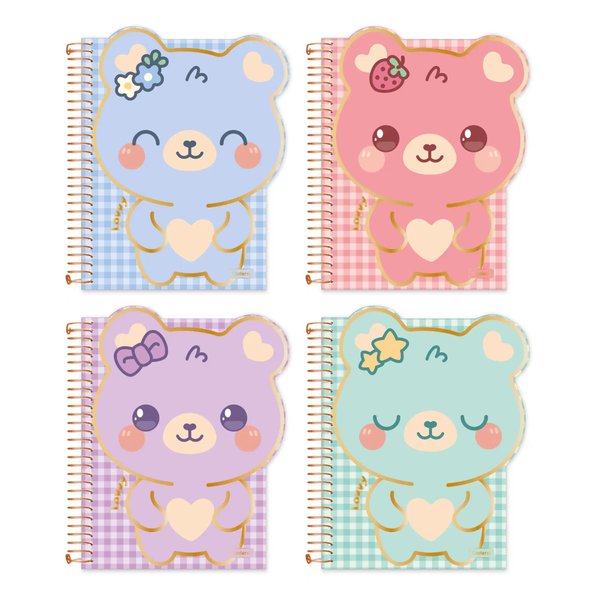 O Caderno Espiral Colegial Capa Dura 01x80 folhas Lovvy é pura fofura e praticidade em um só produto! Com capa em formato especial de ursinho e cores vibrantes, ele é perfeito para quem ama papelaria criativa. Possui bolsa portfólio para guardar anotações e documentos, cartela de adesivos superdivertidos, editorial exclusivo, folhas decoradas com desenhos variados e espiral dourado que dá um toque especial de charme e estilo. Ideal para deixar seus estudos muito mais alegres e organizados! Caso deseje escolher um modelo específico, entre em contato com nosso atendimento para verificar a disponibilidade! ITEM SORTIDO: NÃO GARANTIMOS A ENTREGA DE TODAS AS ESTAMPAS/CORES