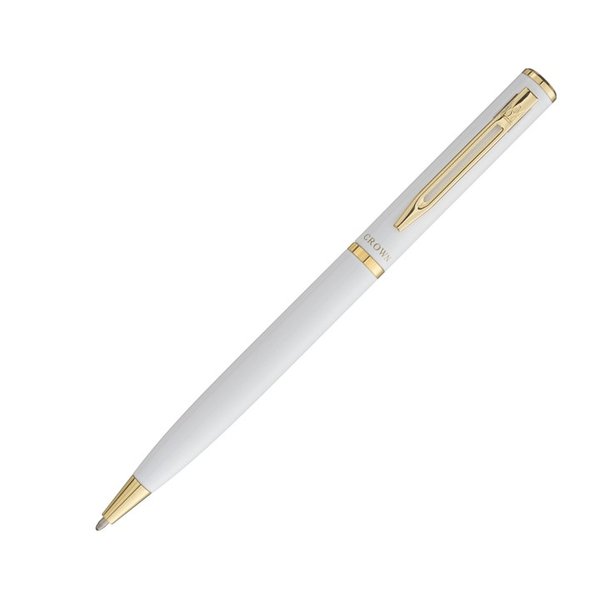A Caneta Crown Capricci Branca/Preta DI12601W é uma peça sofisticada que combina design clássico e moderno. Seu corpo metálico branco com tampa preta e detalhes dourados proporciona um visual elegante, tornando-a ideal para uso profissional ou como presente refinado.