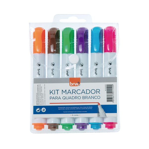 - 1 x KIT CANETA QUADRO BRANCO BRW 6 CORES 2MM