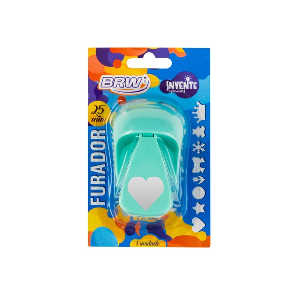 O Furador EVA/Papel 25mm Coração da marca BRW Invente é uma ferramenta prática e eficiente para quem gosta de criar e personalizar projetos. Ideal para recortar lindos corações em materiais como EVA e papel, oferece um corte preciso com facilidade. Seu design compacto facilita o manuseio, tornando o processo de criação mais ágil e confortável.