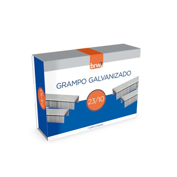 O grampo 23/10 BRW é a escolha ideal para tarefas que exigem alta capacidade de grampeamento. Com acabamento galvanizado, oferece resistência à oxidação e excelente durabilidade. Cada grampo perfura até 70 folhas com precisão e firmeza. A embalagem contém 5.000 unidades, perfeita para ambientes corporativos, escolas e gráficas.