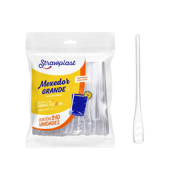 O Mexedor Grande 11cm com 240 unidades da Strawplast é ideal para misturar bebidas com praticidade e estilo. Perfeito para drinks, cafés e coquetéis, ele é fabricado em PS (Poliestireno), garantindo resistência e qualidade. Com 1,12cm de diâmetro e 11,1cm de altura, é uma escolha prática para uso em festas, eventos e no dia a dia.