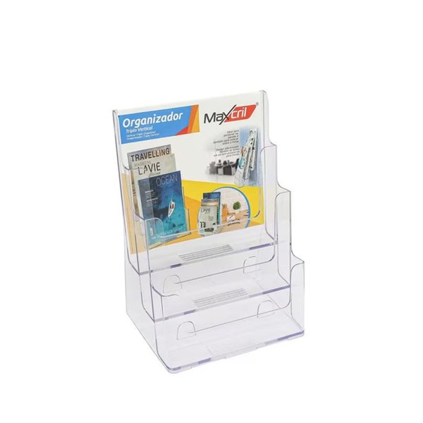 Ideal para manter sua mesa organizada, o Organizador Triplo Vertical Waleu em cristal acomoda revistas, pastas e documentos com praticidade, estilo e visibilidade total.