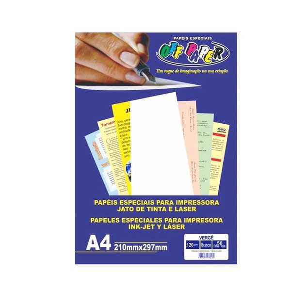 - 1 X PAPEL ESPECIAL A4 VERGÊ BRANCO 120 GRAMAS 50 FOLHAS OFF PAPER