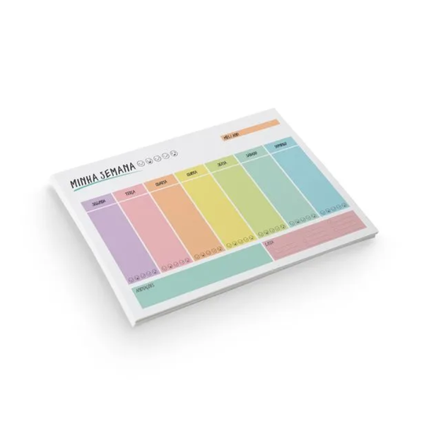 Planner de mesa para anotações e organização da semana. Bloco vem com 54 folhas permanentes (não datado), pode ser usado para diversos objetivos com folhas suficientes para o ano todo. Espaço para anotações, humor e lista de afazeres. Planner De Mesa 250x170mm