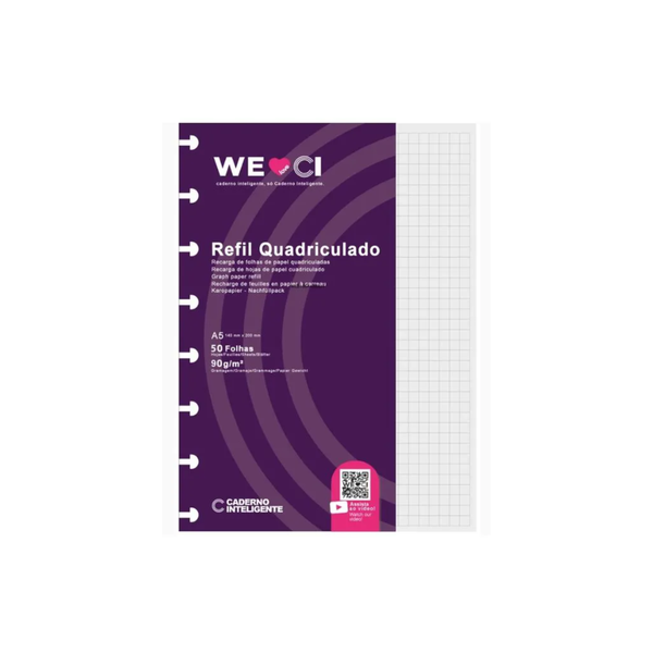 - 1 X REFIL CADERNO INTELIGENTE A5 50 FOLHAS QUADRICULADO