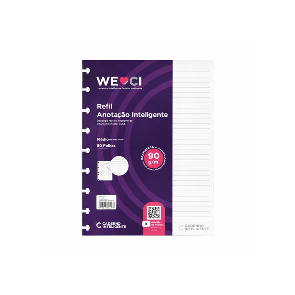 - 1 X REFIL CADERNO INTELIGENTE MÉDIO 50 FOLHAS ANOTAÇÃO